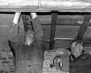 Volunteers were called for but firstly the building had to be made safe to work in. The roof was made waterproof and re-tiled, next the upper floor which had fallen in had to be replaced.