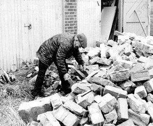 Cyril, G0CEJ, getting on with the task of sorting this large pile of bricks